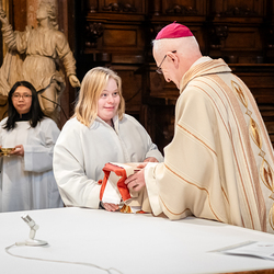 Die Feier, die in Gebärdensprache übersetzt und per Livestream übertragen wurde, wurde von blinden und gehörlosen Menschen sowie von Personen mit körperlicher Behinderung oder Down-Syndrom mitgestaltet. Sie übernahmen unter anderem die Lesung oder sprachen die Fürbitten. Musikalisch wurde der Gottesdienst von Mitgliedern der Glaubens- und Musikgruppe "Faith4U&Me" begleitet, in der sich Menschen mit und ohne Behinderung engagieren. Zusätzlich ministrierten sie, begleiteten den Gottesdienst und stellten das Evangelium pantomimisch dar. Unsere Kamera war vor Ort, um den besonderen Moment festzuhalten.