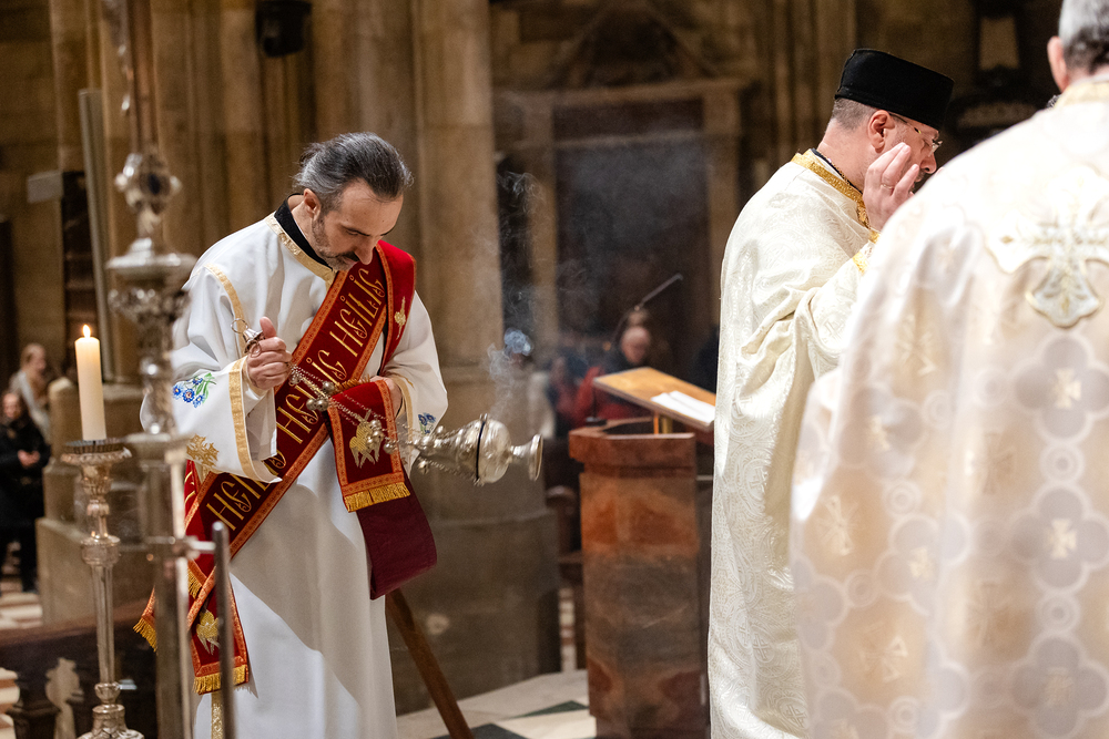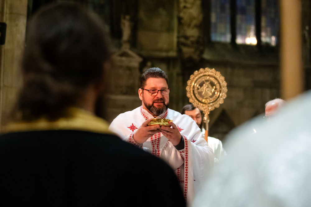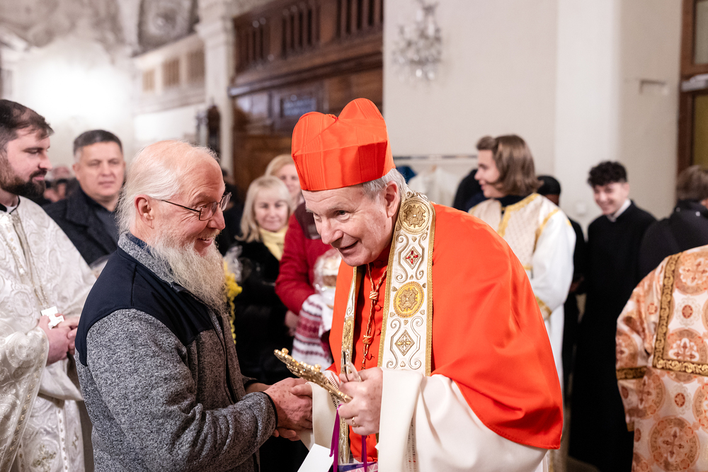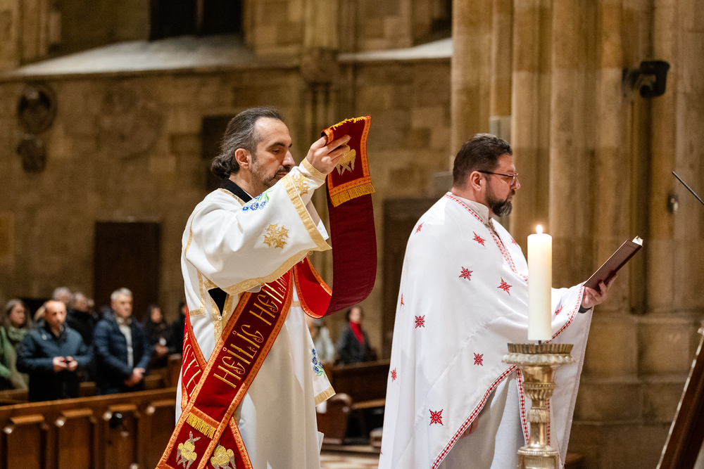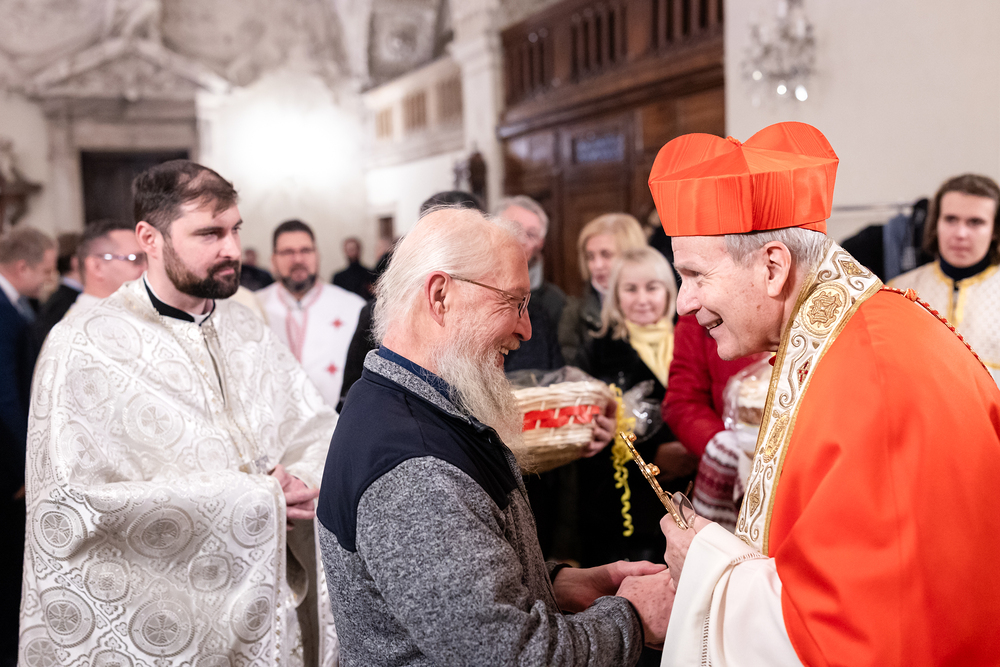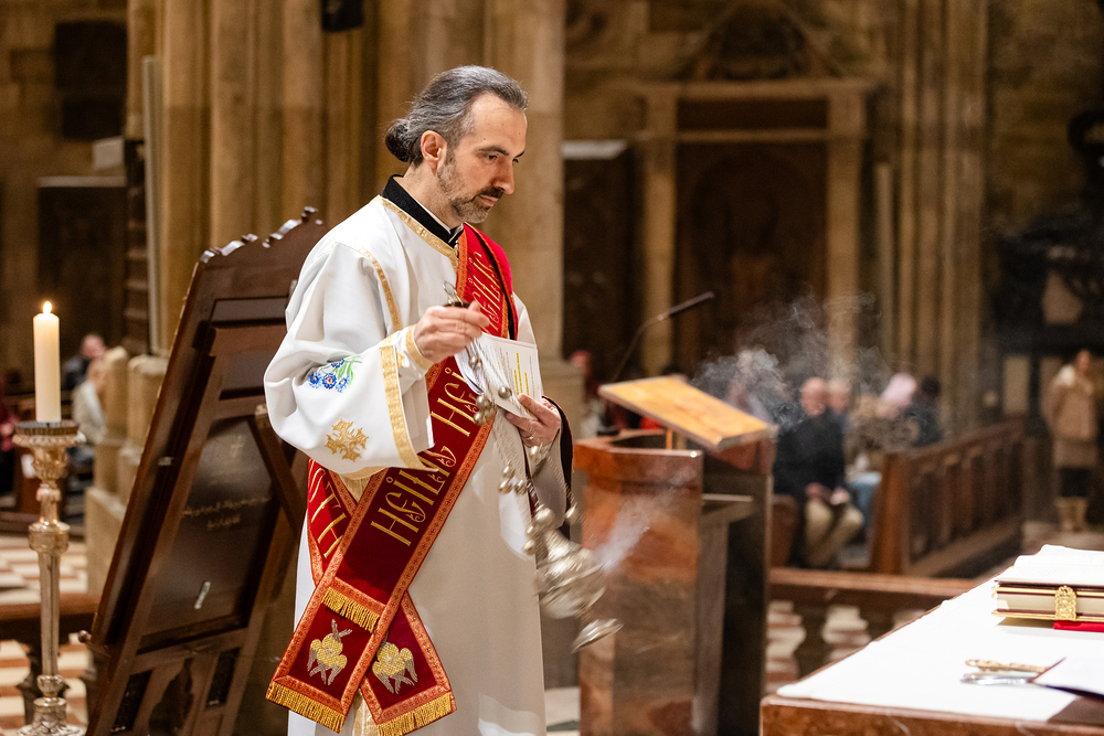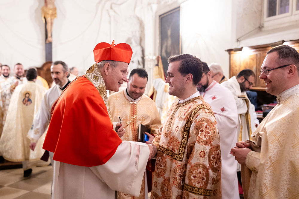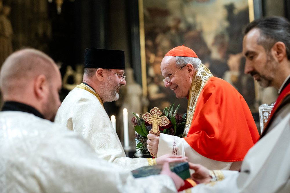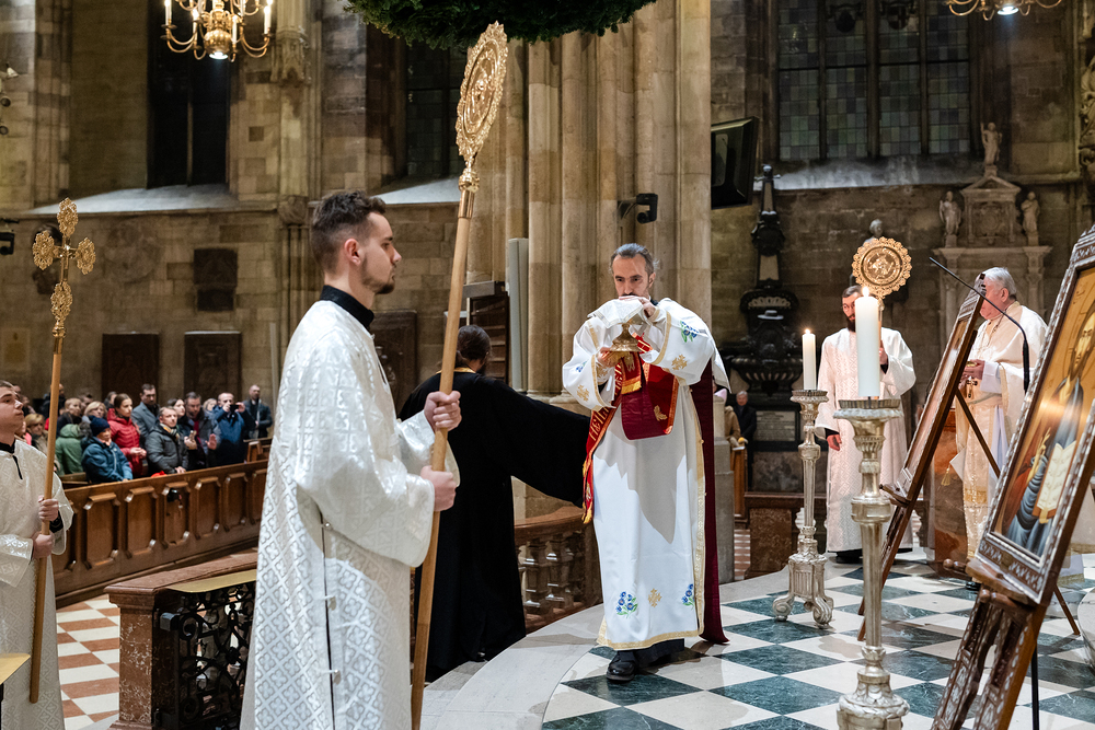 Der Wiener Erzbischof, für den angesichts seines 80. Geburtstags im Jänner demnächst ein Nachfolger ernannt werden dürfte, ist seit drei Jahrzehnten auch Ordinarius und somit Letztverantwortlicher der mit Rom verbundenen Kirchen. Deren Vertreter, angeführt vom zuständigen Generalvikar Yuriy Kolasa, würdigten Schönborns Verdienste bei einer vom Ostkirchenordinariat organisierten Feier im byzantinischen Ritus - der Göttlichen Liturgie des heiligen Johannes Chrysostomus. Wir waren mit der Kamera dabei.