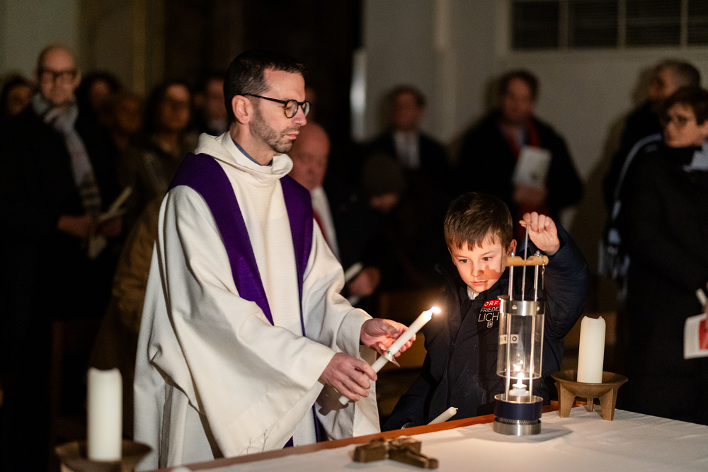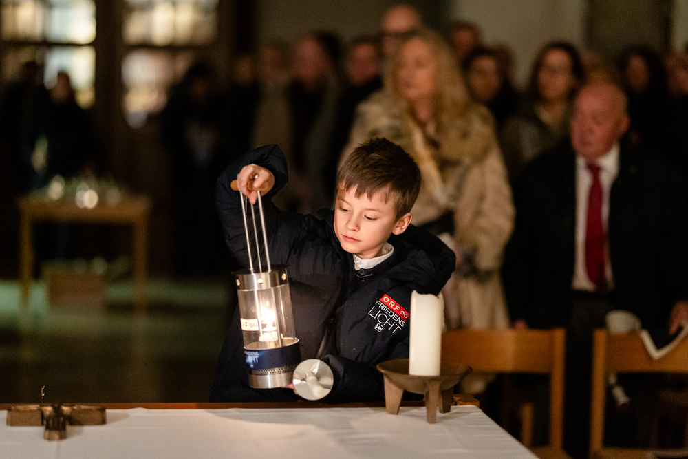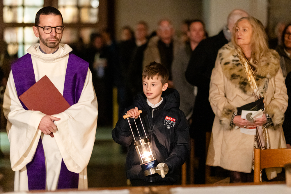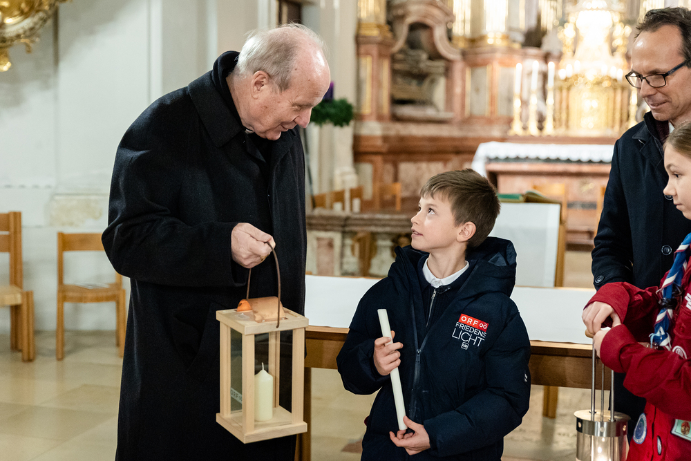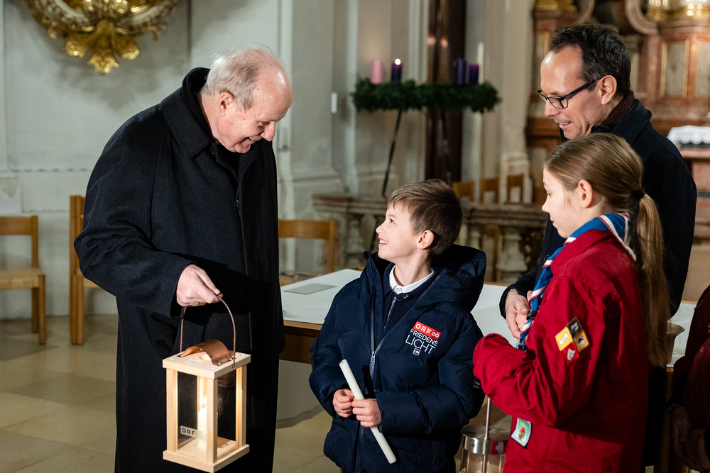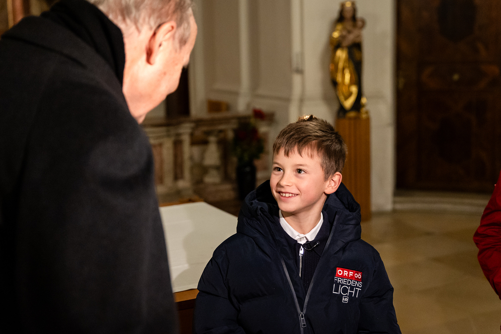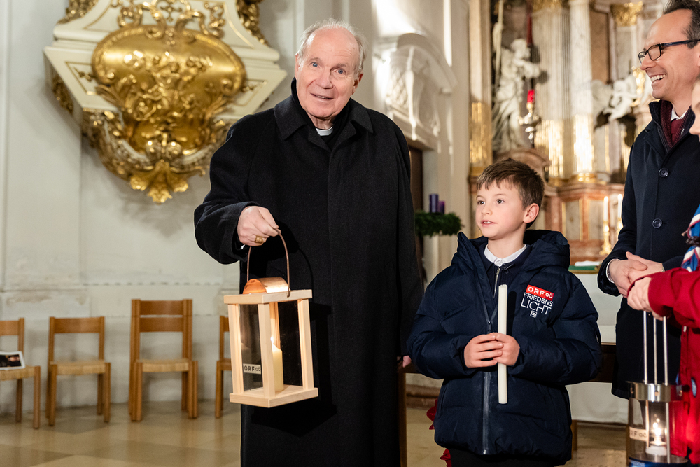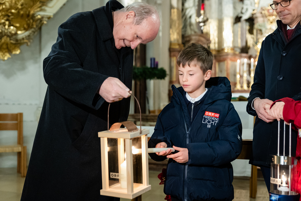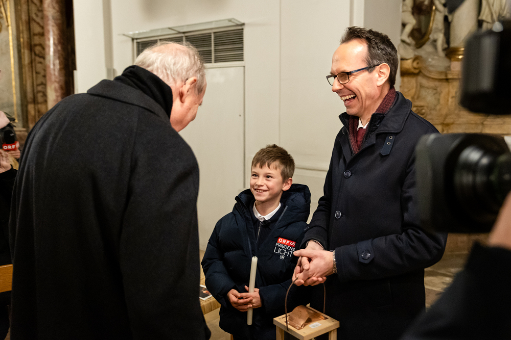 Im Rahmen der Vesper zum Adventempfang für Medienschaffende wurde das ORF-Friedenslicht am Donnerstag, den 12. Dezember 2024, an Christoph Kardinal Schönborn, den Erzbischof von Wien, übergeben. Der neunjährige Matthias Secklehner aus Gschwandt bei Gmunden überbrachte das Licht als Symbol des Friedens in die Kirche des Wiener Priesterseminars. Wir waren mit der Kamera dabei.