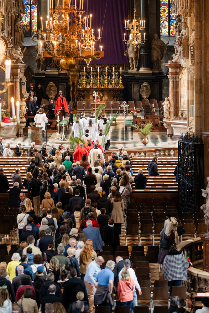Der Palmsonntag ist ein Tag, der von Freude und Jubel geprägt ist. Er erinnert an Jesu Einzug in Jerusalem, bei dem die Menschen ihm zujubelten und mit Palmzweigen winkten. Jesus wird gleichsam als König gefeiert. Das ist vergleichbar damit, wie heute hohen Persönlichkeiten der rote Teppich ausgerollt wird. Die Palmweihe des Stephansdoms, geleitet vom Apostolischen Administrator Josef Grünwidl, fand bei der Pestsäule am Graben statt. Anschließend zog die Prozession feierlich in den Stephansdom ein. Wir waren mit der Kamera dabei.