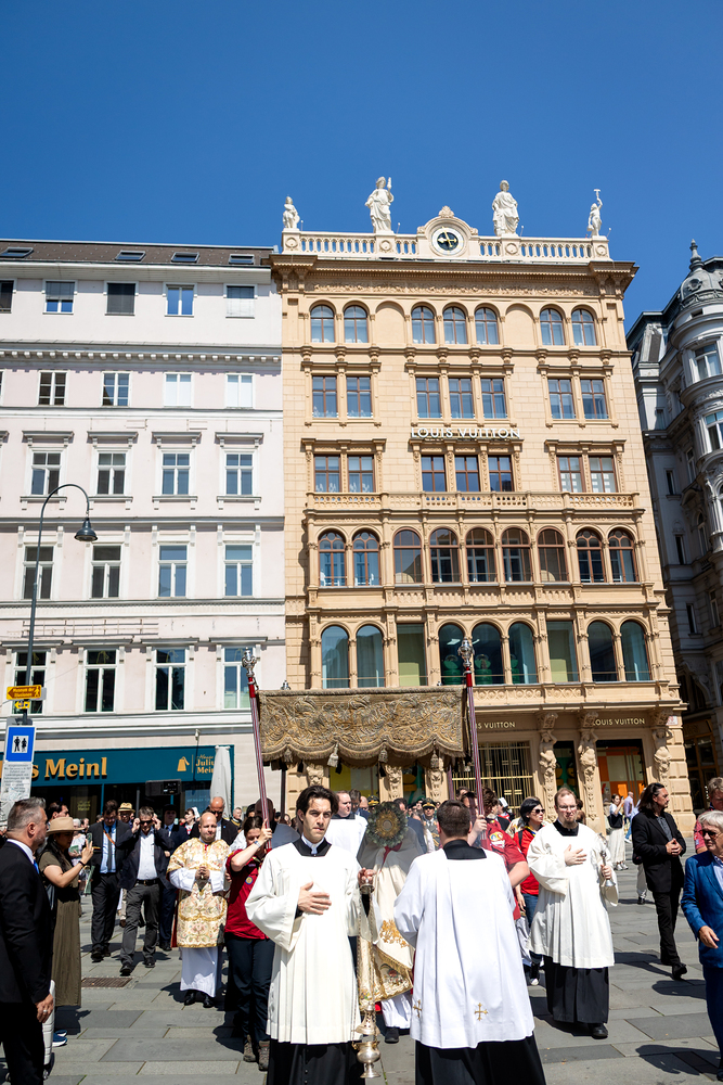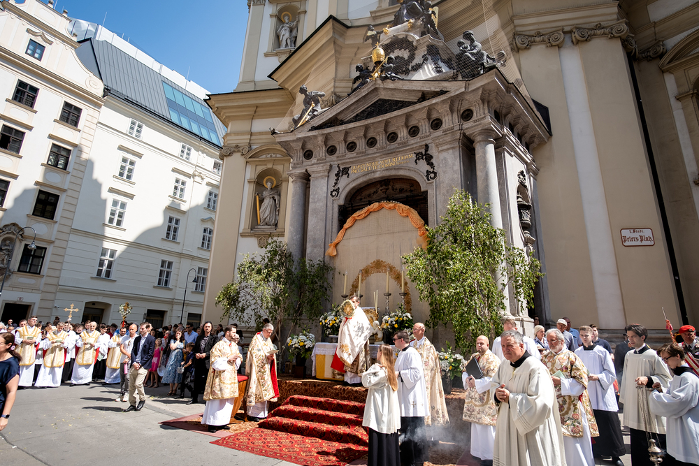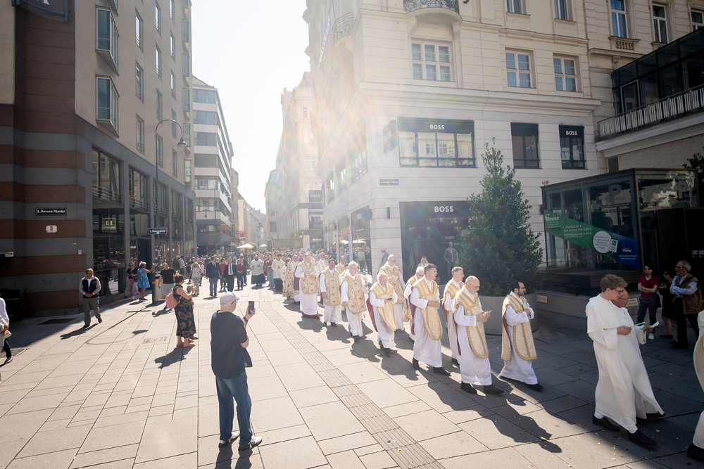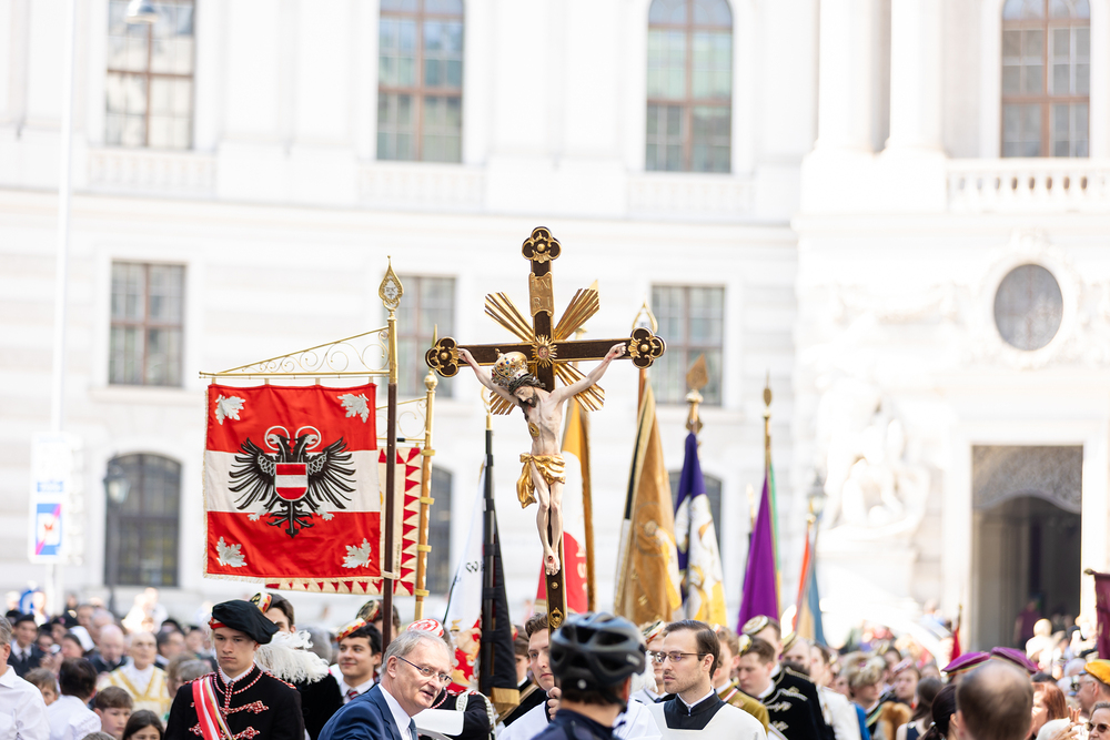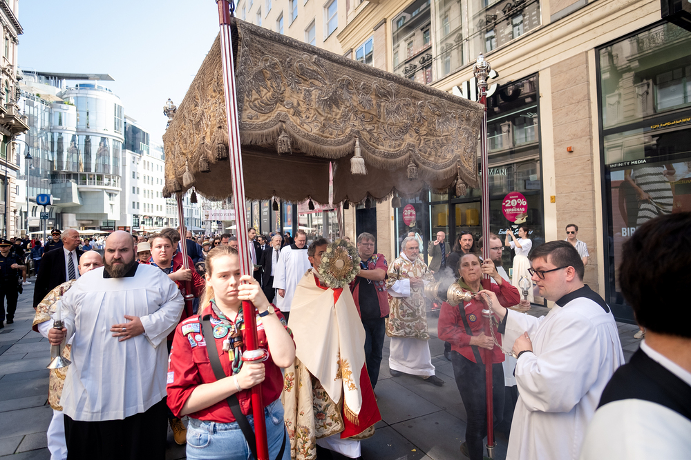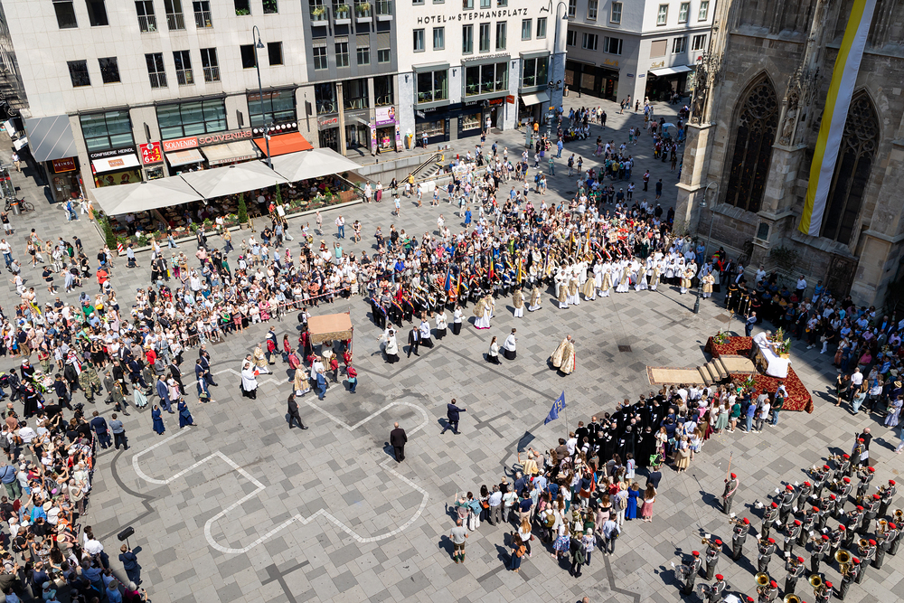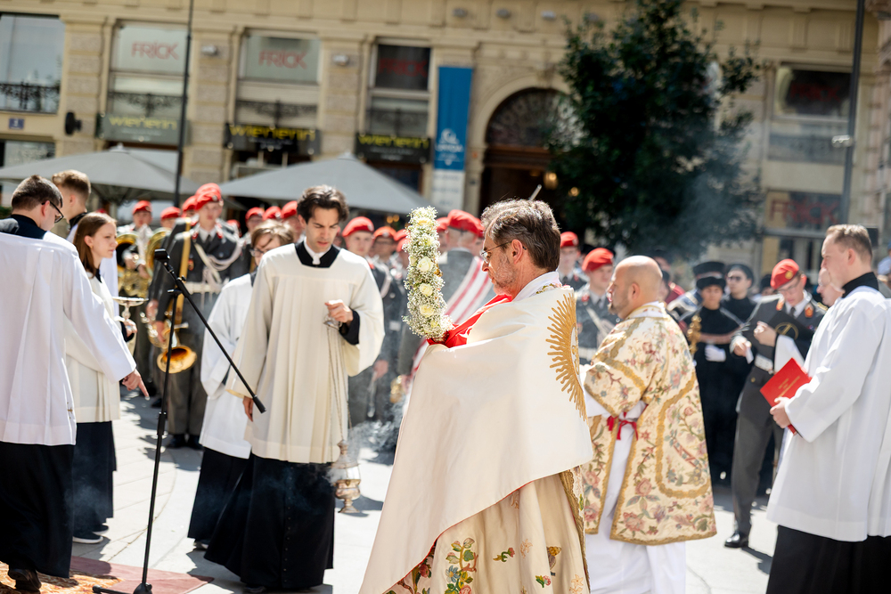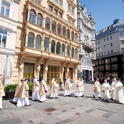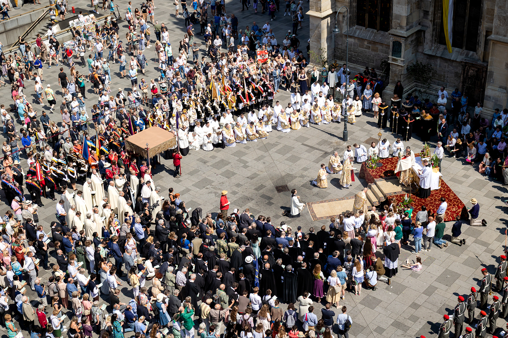 Josef Grünwidl betonte beim Stadtumzug anlässlich Fronleichnam die untrennbare Verbindung zwischen dem religiösen Feiertag und der christlichen Verantwortung, Gottes Schöpfung zu bewahren und eine „ökologische Umkehr“ angesichts der Klimakrise einzuleiten. Er dankte allen, die durch nachhaltiges Handeln und politischen Einsatz dazu beitragen, notwendige Maßnahmen zu ergreifen, um die dramatischen Folgen des Klimawandels abzuwenden. Die Fronleichnamsprozession, die vom Stephansdom ausging und Stationen am Michaelerplatz sowie am Graben bei der Peterskirche umfasste, zog erneut zahlreiche Gläubige und kirchliche Gruppierungen an. Auch politische Vertreter waren anwesend. Wir waren mit der Kamera dabei.