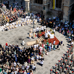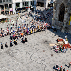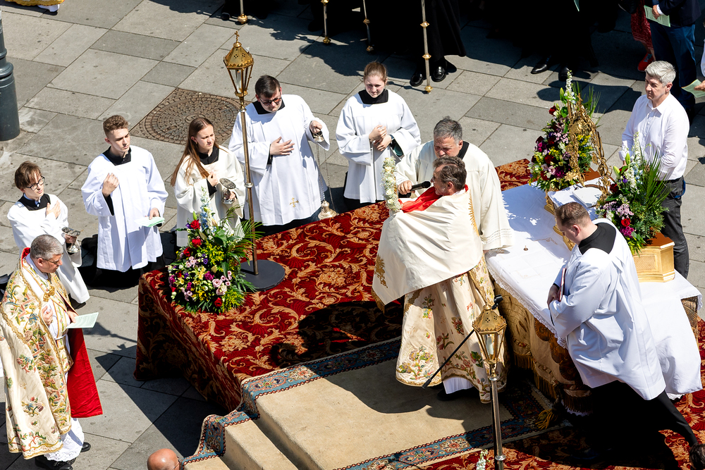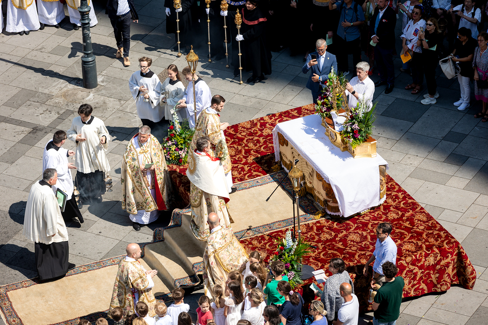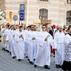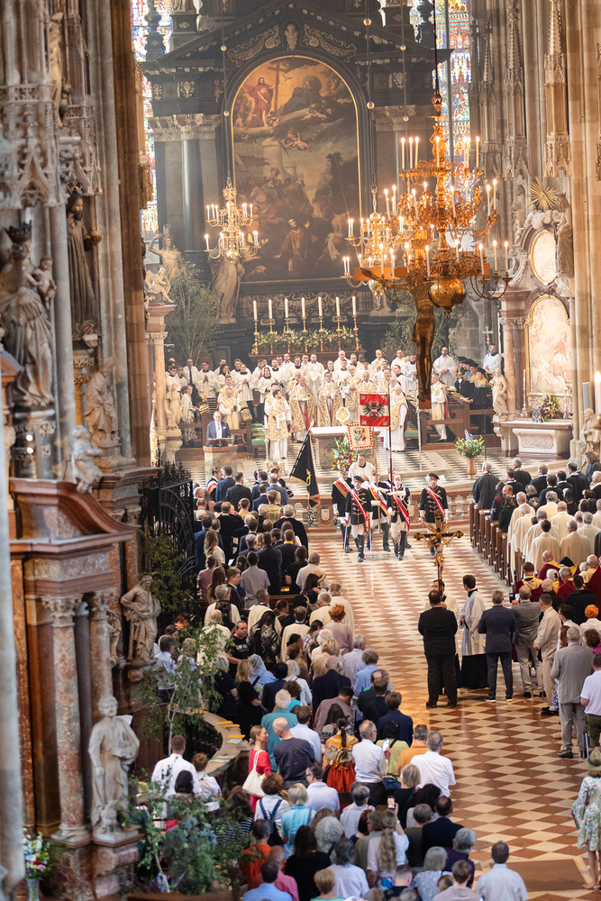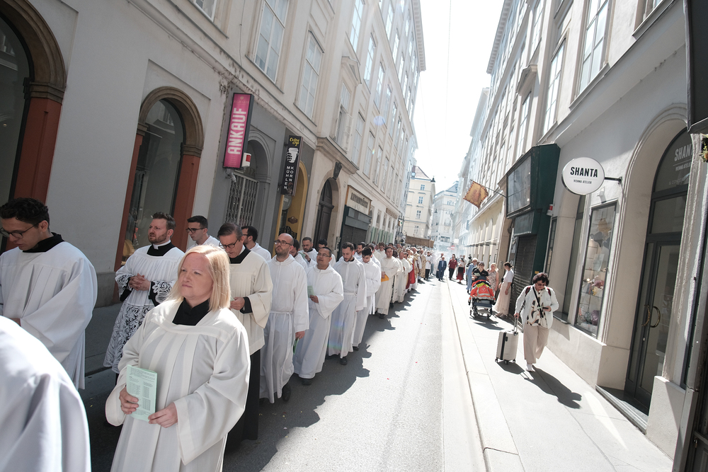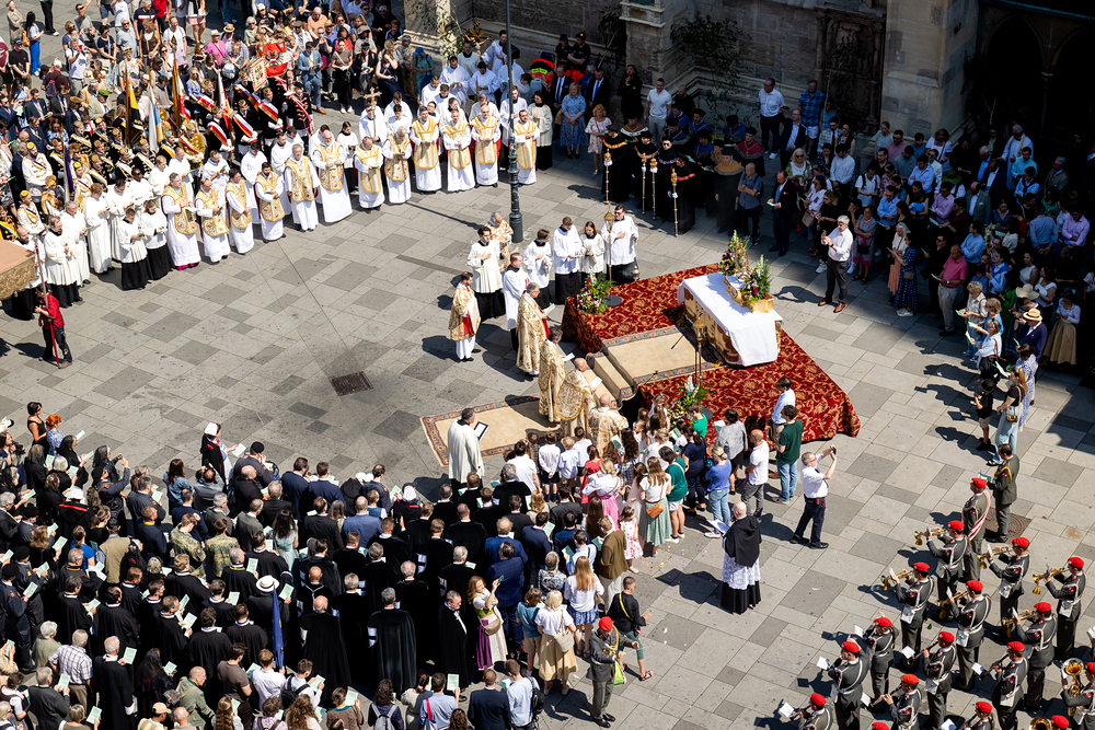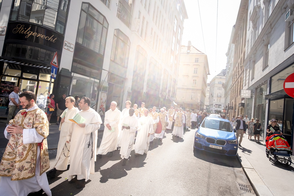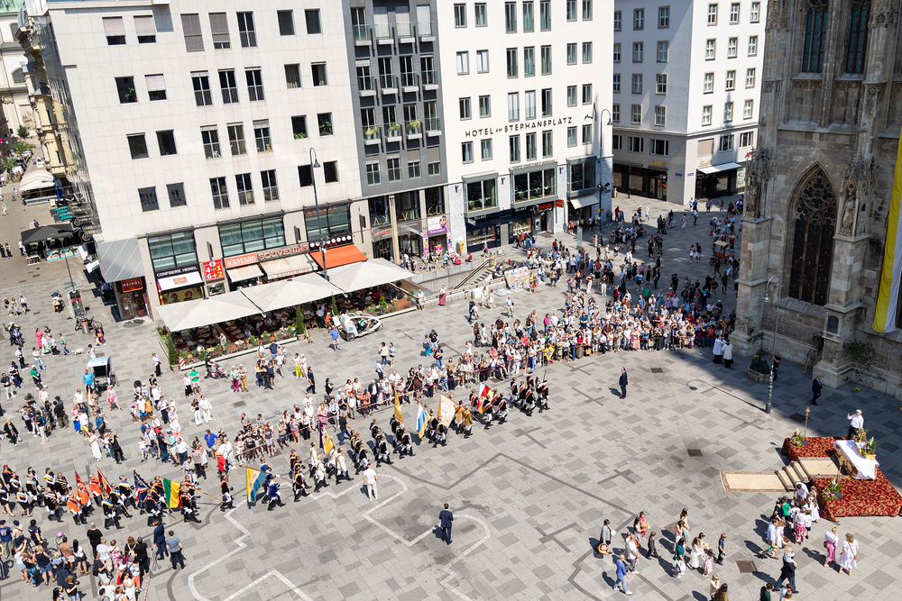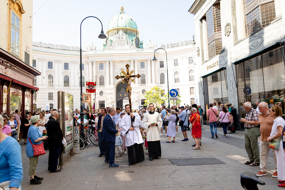 Josef Grünwidl betonte beim Stadtumzug anlässlich Fronleichnam die untrennbare Verbindung zwischen dem religiösen Feiertag und der christlichen Verantwortung, Gottes Schöpfung zu bewahren und eine „ökologische Umkehr“ angesichts der Klimakrise einzuleiten. Er dankte allen, die durch nachhaltiges Handeln und politischen Einsatz dazu beitragen, notwendige Maßnahmen zu ergreifen, um die dramatischen Folgen des Klimawandels abzuwenden. Die Fronleichnamsprozession, die vom Stephansdom ausging und Stationen am Michaelerplatz sowie am Graben bei der Peterskirche umfasste, zog erneut zahlreiche Gläubige und kirchliche Gruppierungen an. Auch politische Vertreter waren anwesend. Wir waren mit der Kamera dabei.