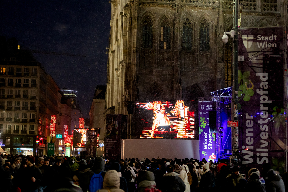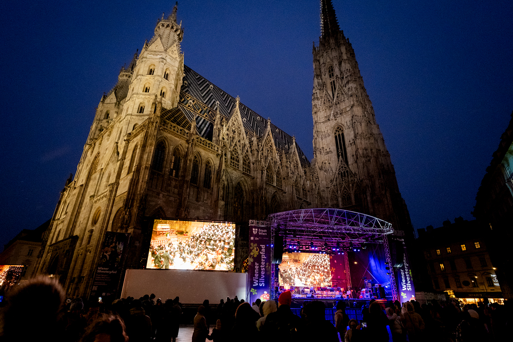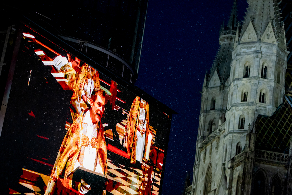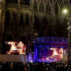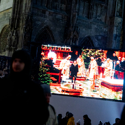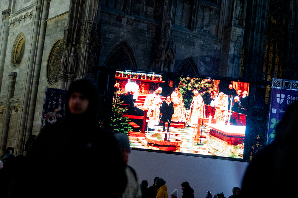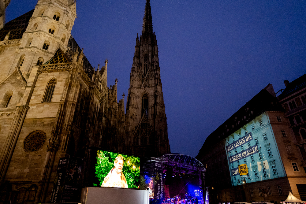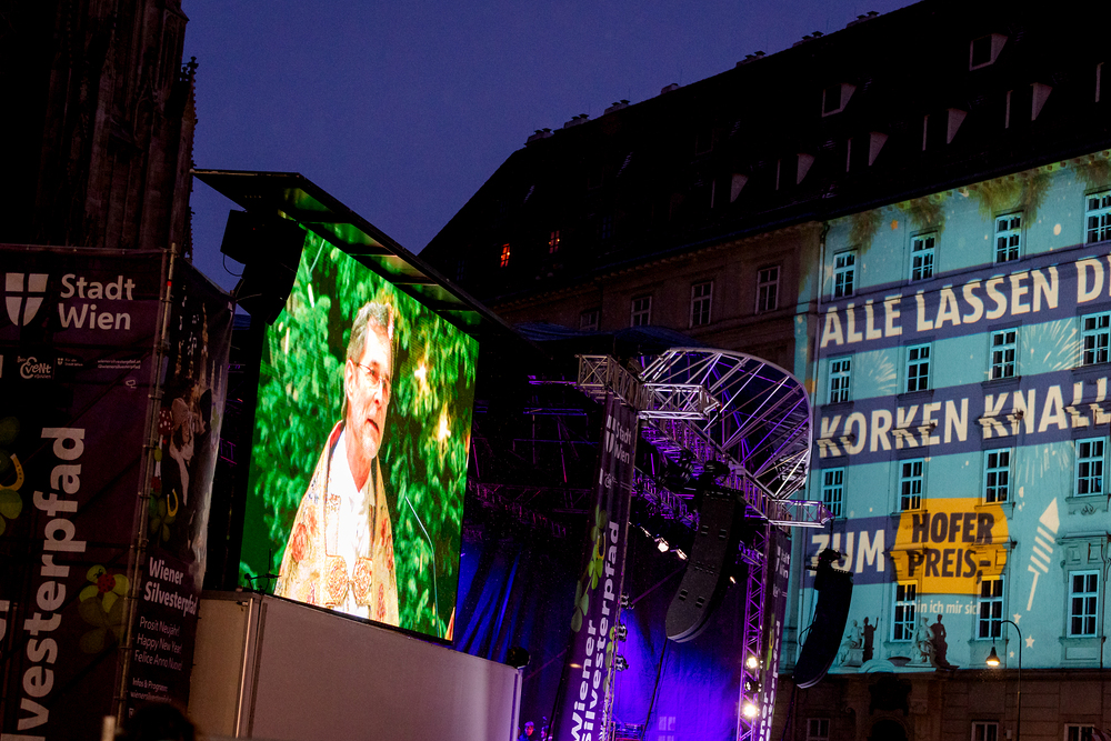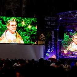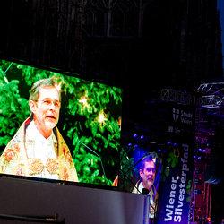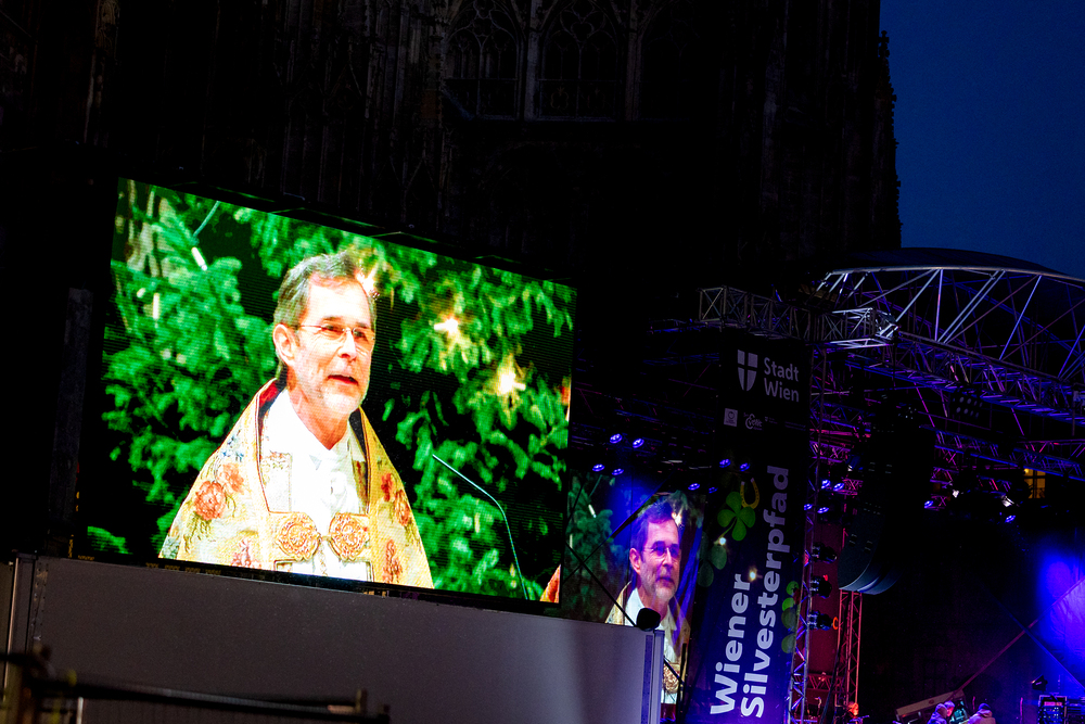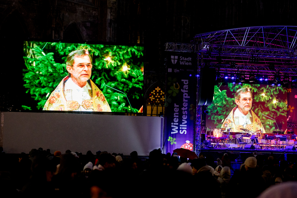 Jahresschlussandacht, die auf die Screens des Silvesterpfades auf dem Stephansplatz übertragen wurde.