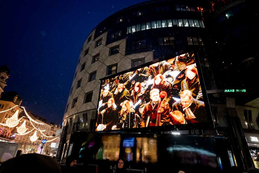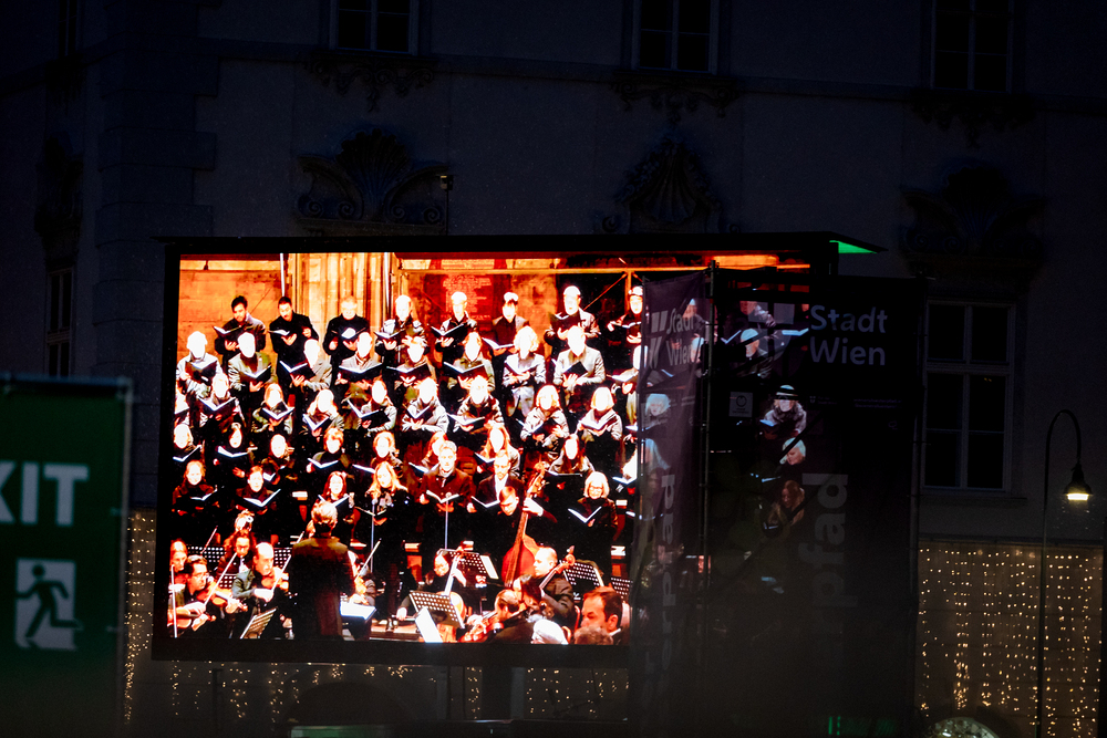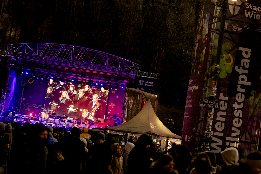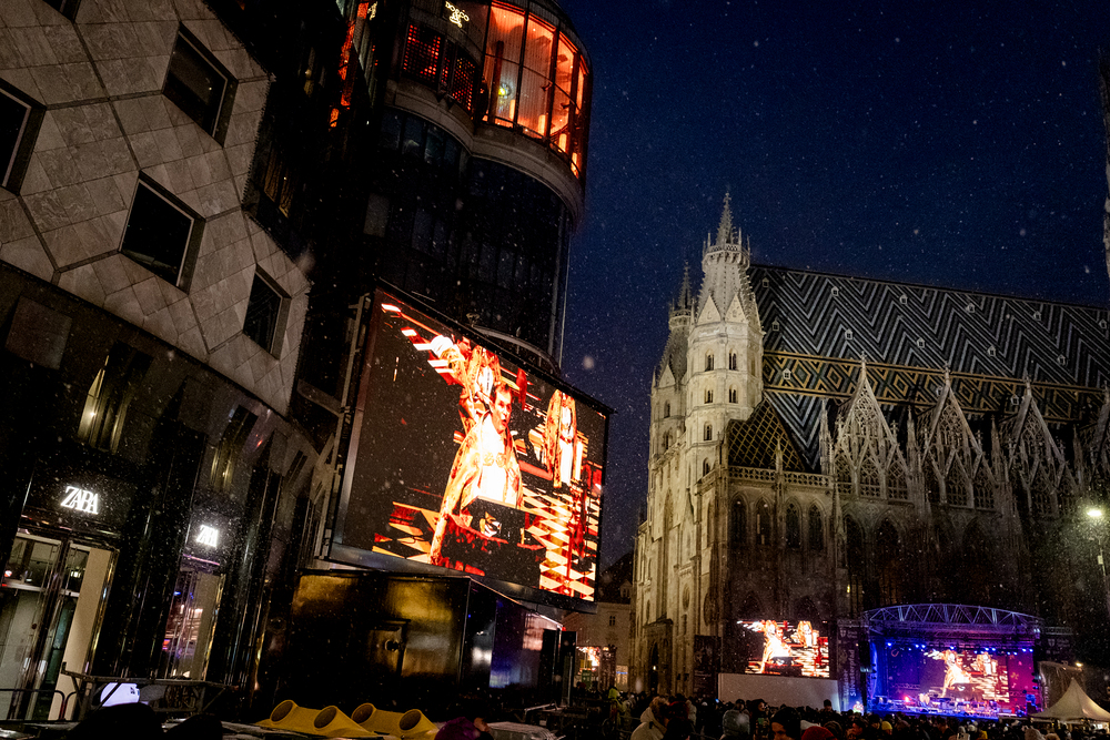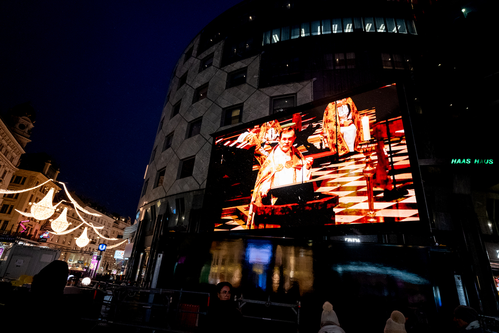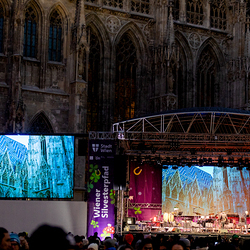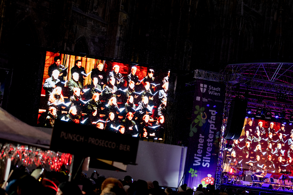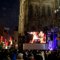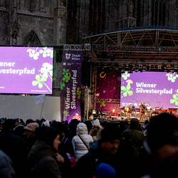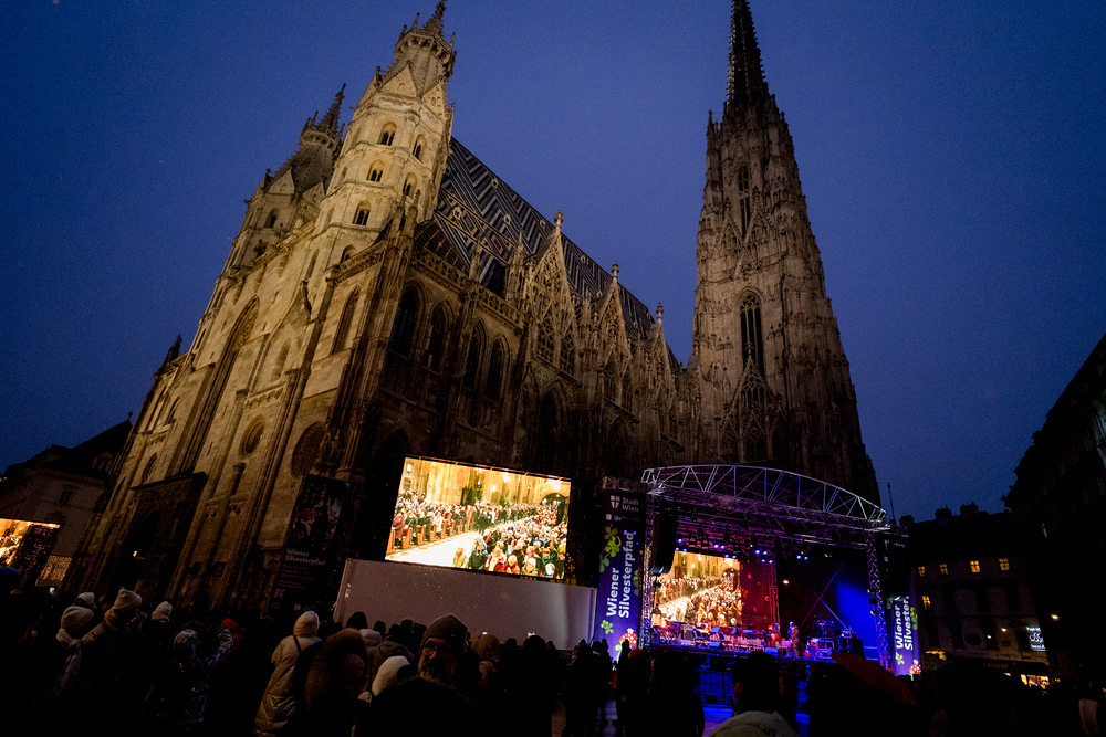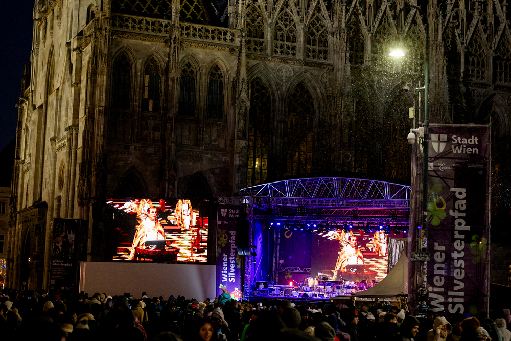 Jahresschlussandacht, die auf die Screens des Silvesterpfades auf dem Stephansplatz übertragen wurde.