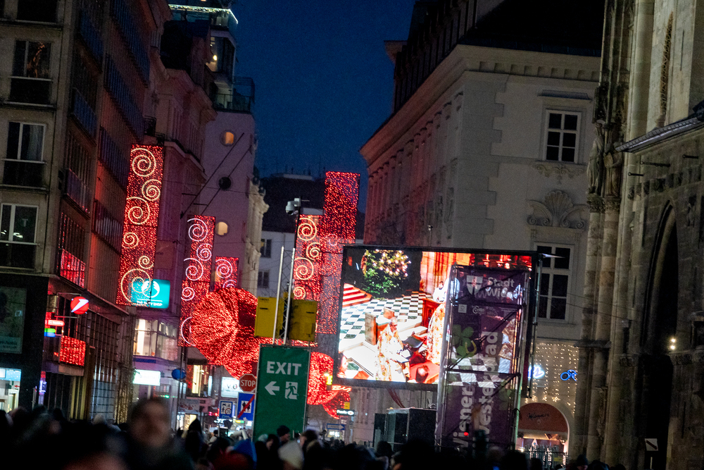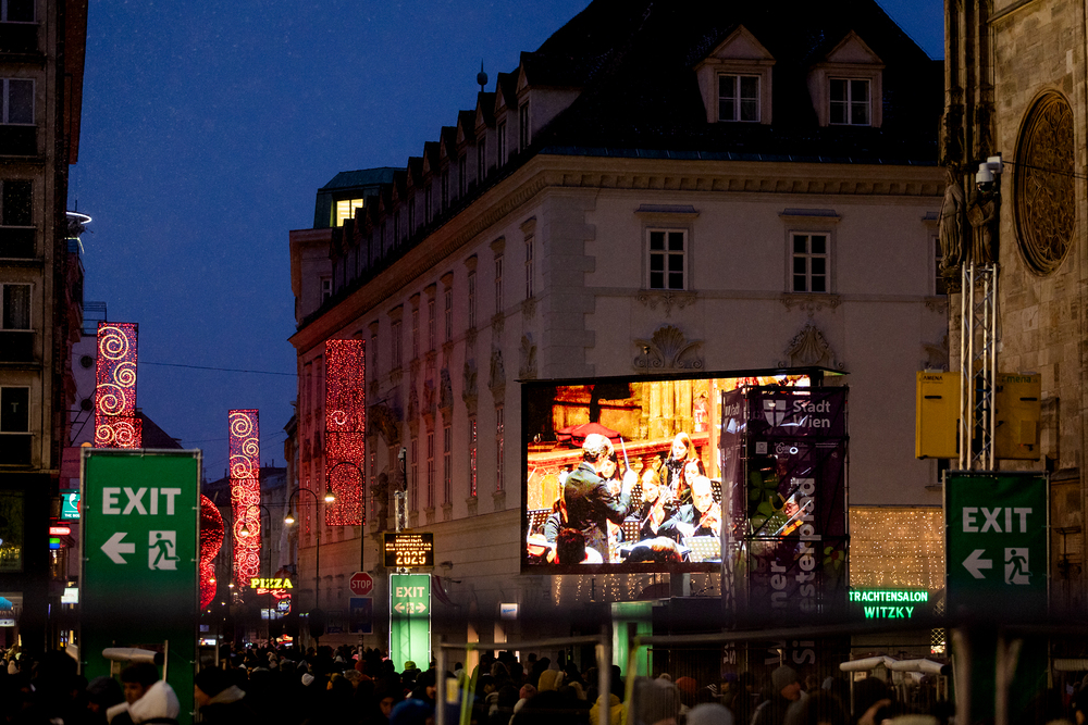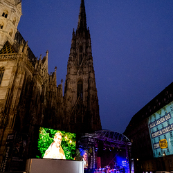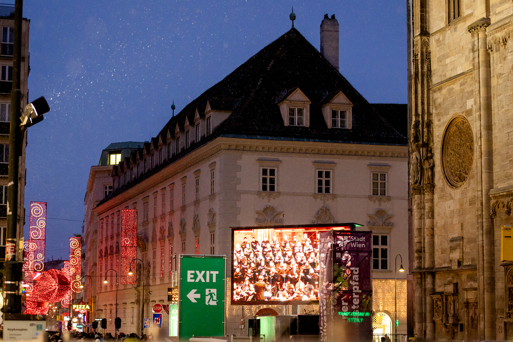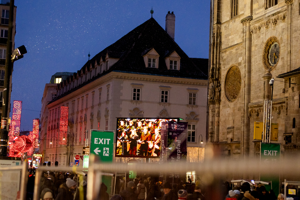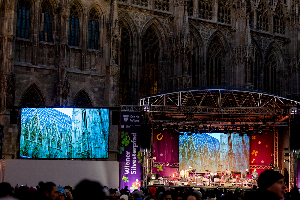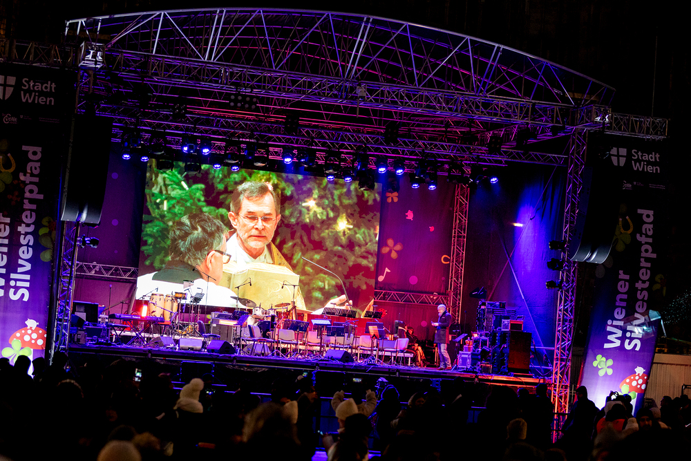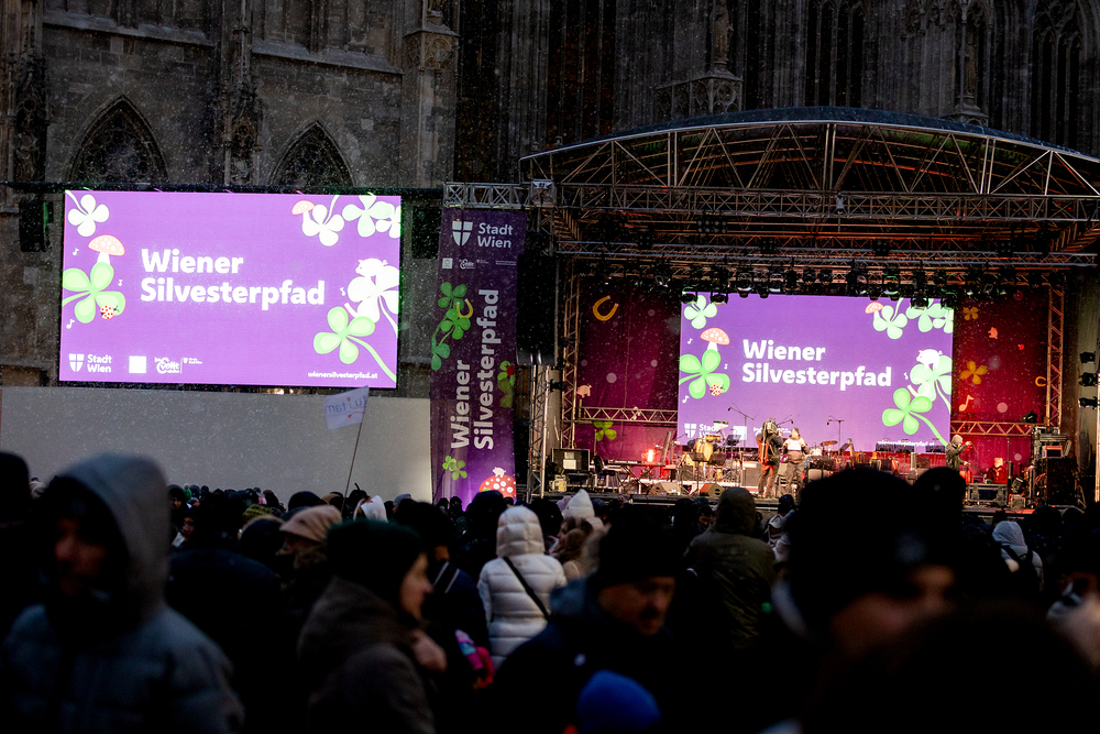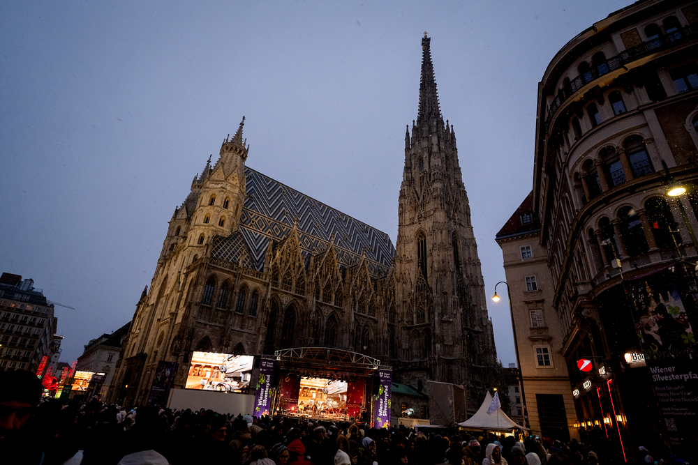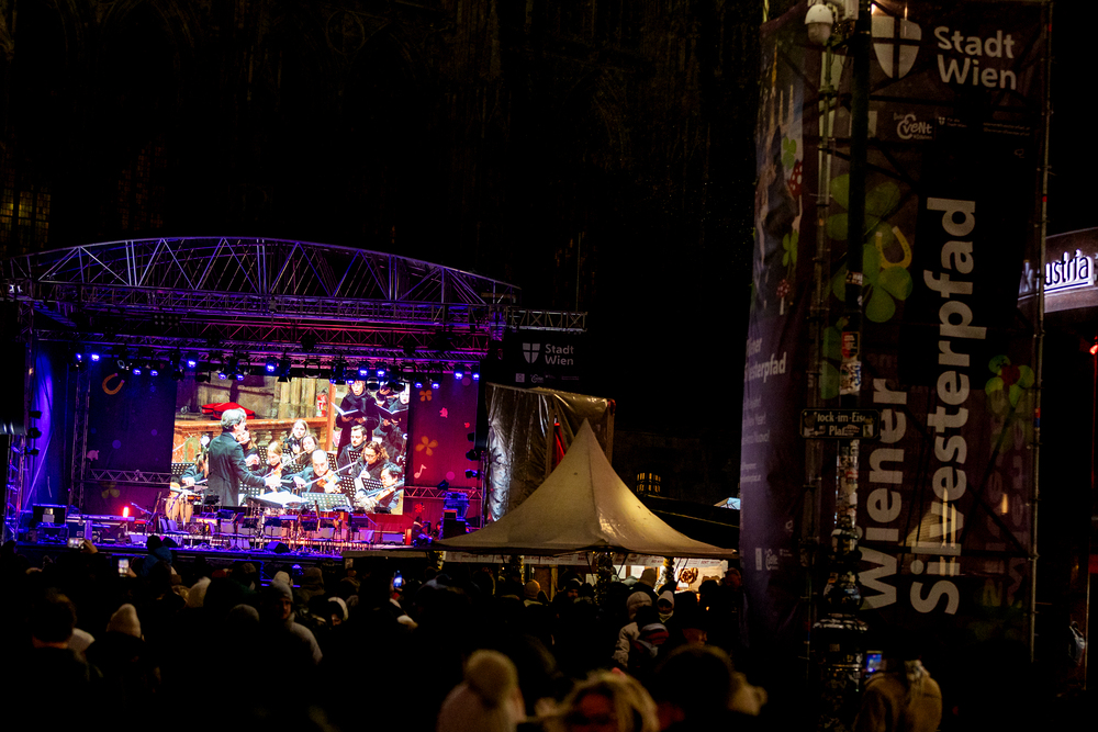 Jahresschlussandacht, die auf die Screens des Silvesterpfades auf dem Stephansplatz übertragen wurde.
