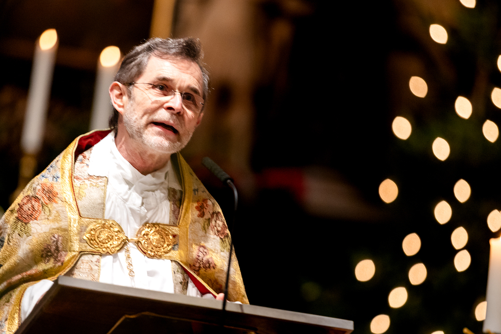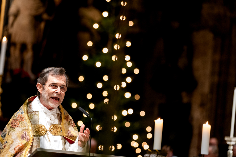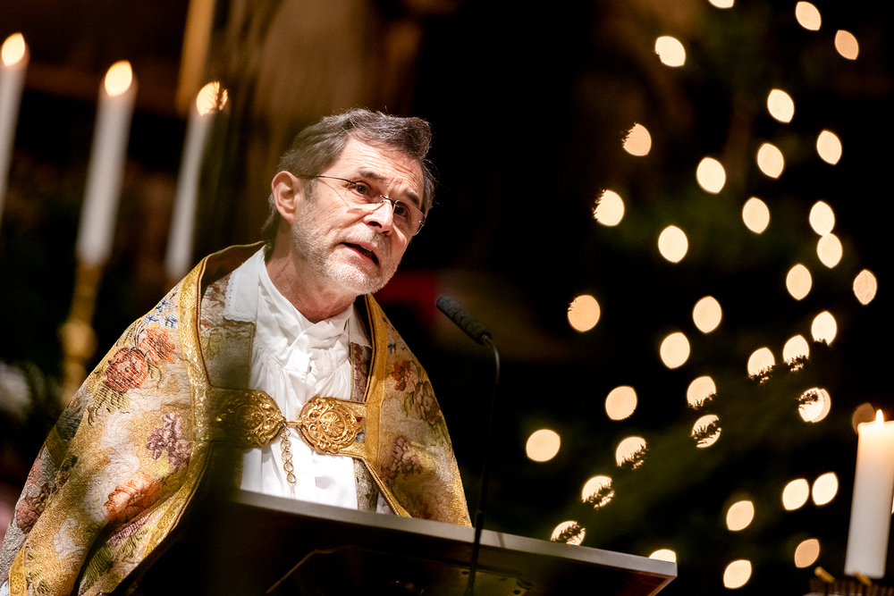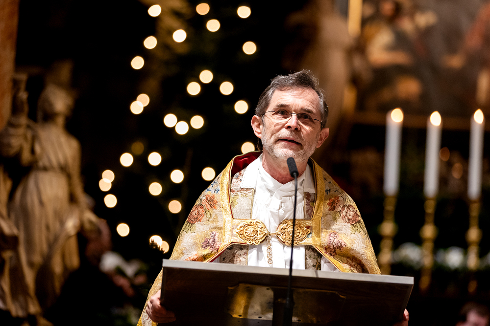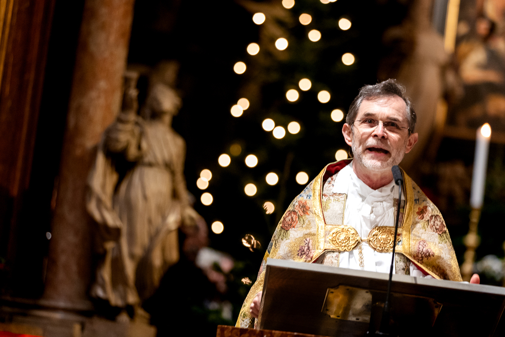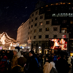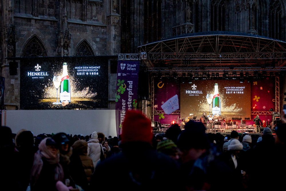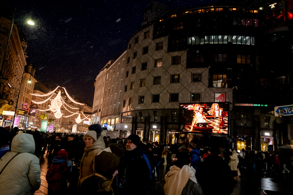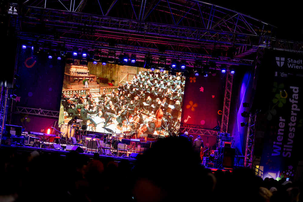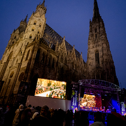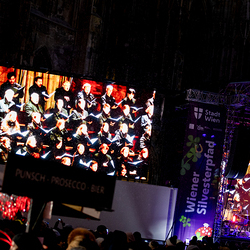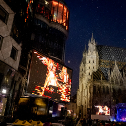 Jahresschlussandacht, die auf die Screens des Silvesterpfades auf dem Stephansplatz übertragen wurde.