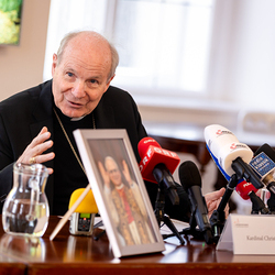 Pressekonferenz anlässlich der Wahl von Leo XIV mit Kardinal Schönborn Honorarfreie Bilder unter Angabe des Copyrights "Erzdiözese Wien/Schönlaub". zu den Bildern: Pressekonferenz anlässlich der Wahl von Leo XIV mit Kardinal Schönborn